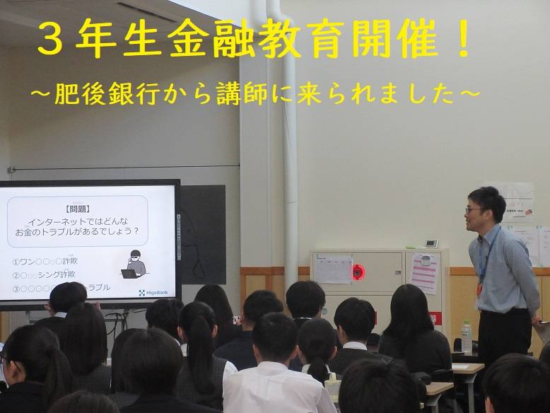 本日肥後銀行金融資産コンサルティング部から栫雄也様をお招きし、3年生を対象とした金融教育を行っていただきました。