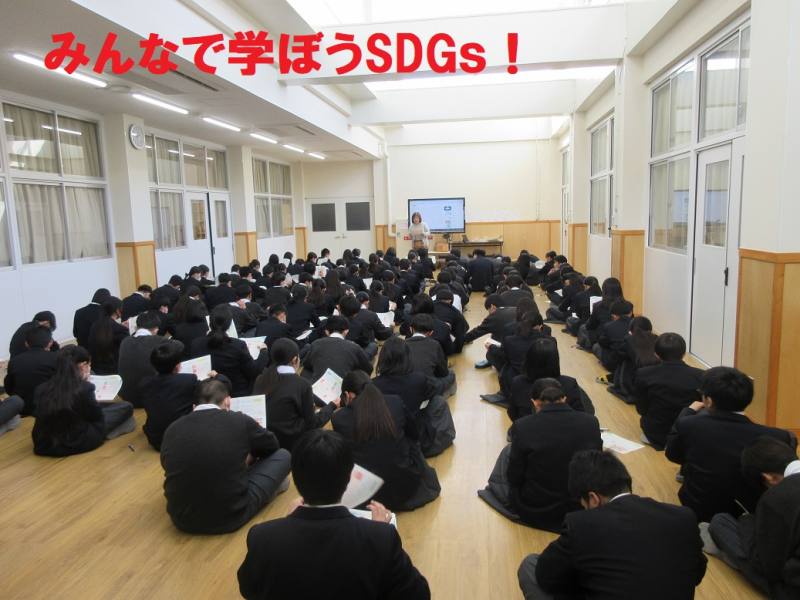 2月6日(金)1年生は総合的な学習の時間で、SDGsについて学びました!皆さんご存じのとおり、菊池市はSDGsを推奨している市です。そのこともあり、是非みんなにSDGsについて学んでもらおうと、今年度初めて取り組みました。