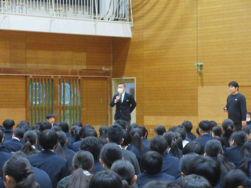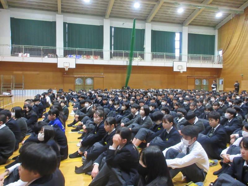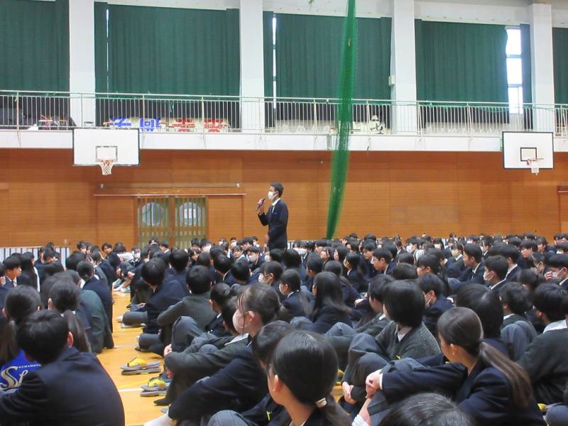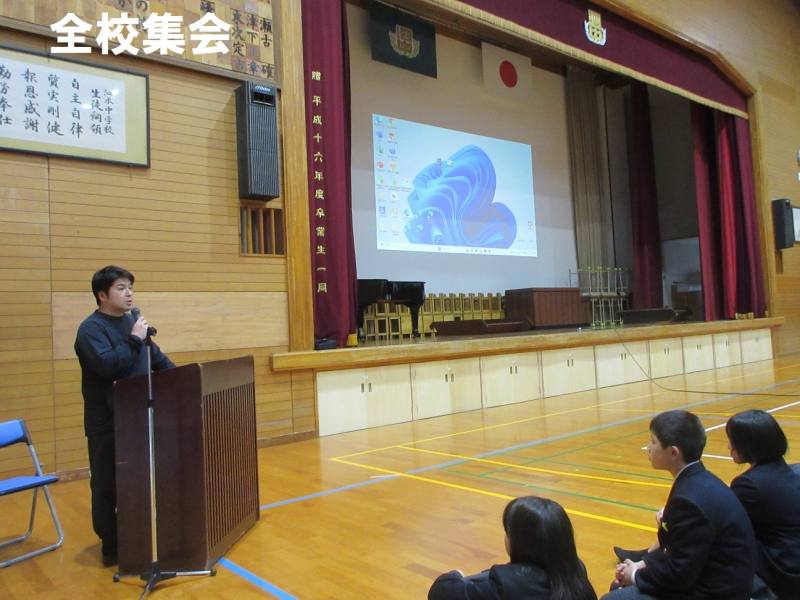 世の中で起こっている、中高生による暴力動画の拡散を受け、あらためて暴力や暴言、そして情報モラルについて考えるための緊急集会を開きました。