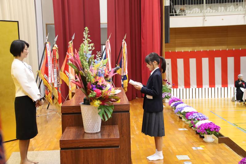 【新入生を代表して1組の古川眞子さんが誓いの言葉を堂々と述べてくれました。とても頼もしく感じました(≧▽≦)】