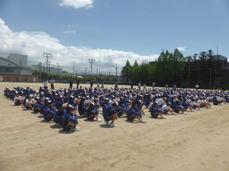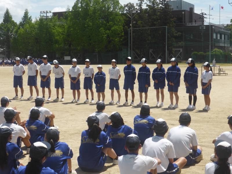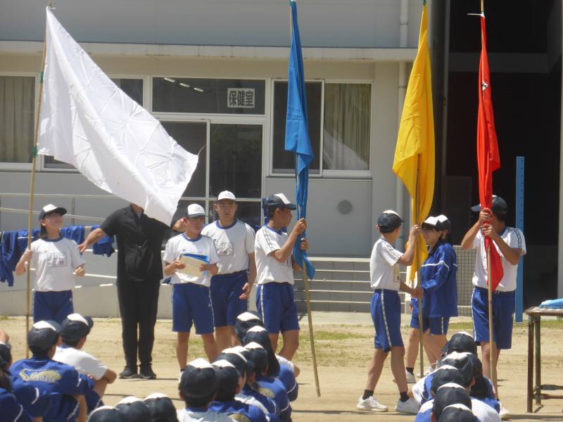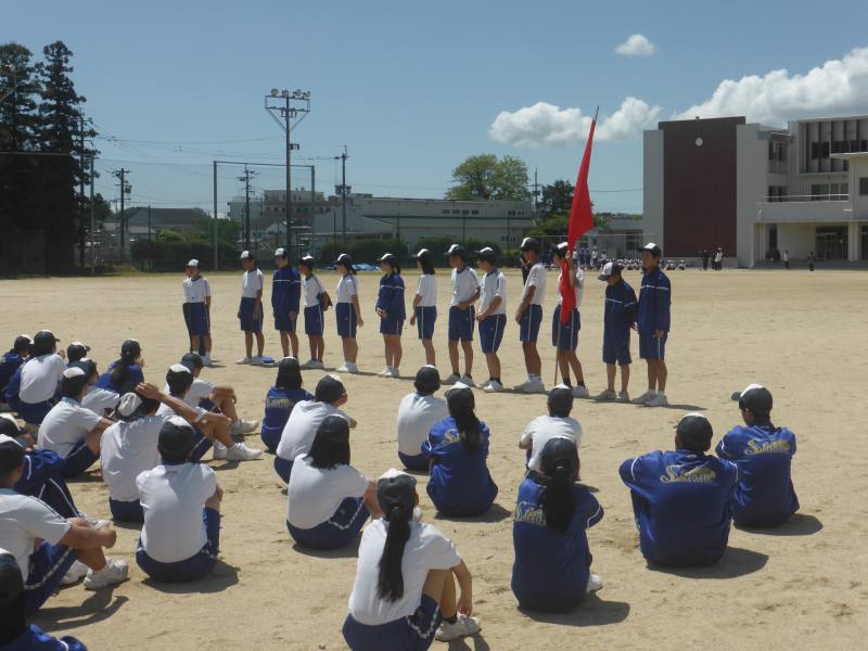 ・本日の4校時に体育大会結団式が晴天の下で行われました。学校長のお話の後、団旗授与や団長の挨拶、団ごとに分かれてリーダー紹介や声出しが行われ、学校内の雰囲気が体育大会モードになりつつあります(^^♪これから3年生を中心に練習が始まります☆本校の一大行事である体育大会!生徒会スローガン『輝進(きしん)』のもと、生徒たち一人ひとりが輝き進んでほしいと思います!