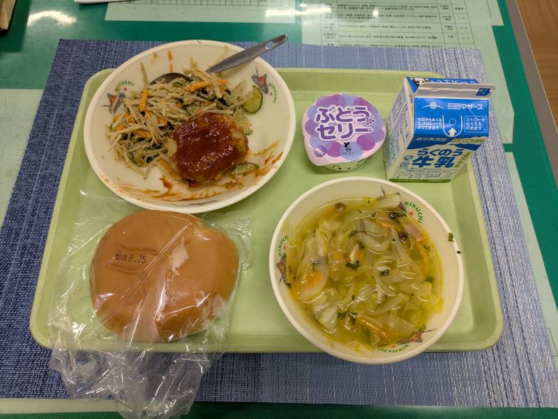 ・夏休みが終わり、本日から前期後半がスタートです!学校生活で楽しみの1つである給食も今日からでした。本日のメインはセルフハンバーガー🍔 野菜スープも一緒に美味しくいただきました!
