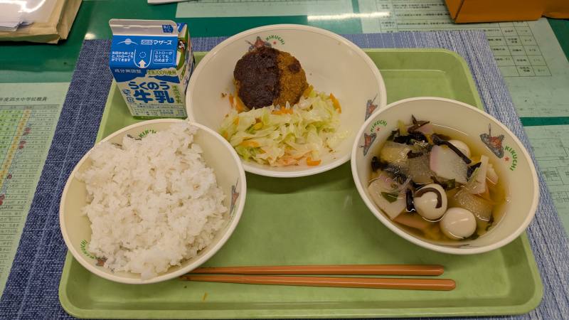 ・本日は、愛知県の郷土料理『味噌カツ』が提供されました。赤味噌は、九州ではあまり食されませんが、甘めの味噌がカツとマッチして美味しかったです。キャベツサラダも味噌がドレッシン代わりとなって相性バッチリ(^O^)
