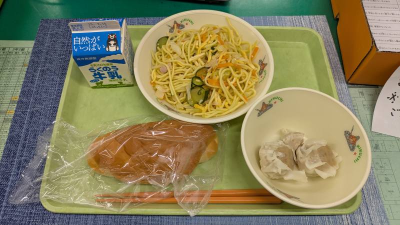 ミルクパン 牛乳 冷やし中華 肉焼売