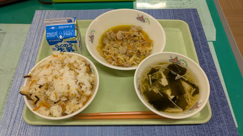 きんぎょ飯 牛乳 けいちゃん すまし汁