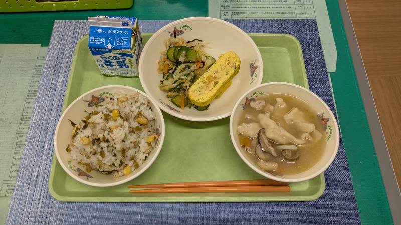 かみかみ高菜ご飯 牛乳 ちぎりだご汁