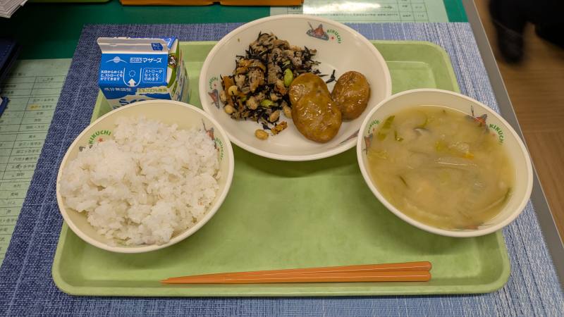 ・本日の味噌バタースープは、写真では分かりにくいですが鮭が入った石狩鍋です。根菜や白菜など野菜もたくさん入った栄養満点のスープです!