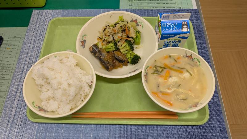 ・本日は和食メニューです。日本の郷土料理である呉汁がでました。野菜もたくさん入ってヘルシーで体が温まりました。またさんまのみぞれ煮はサッパリしながらもご飯のおかずとしてピッタリな一品です!
