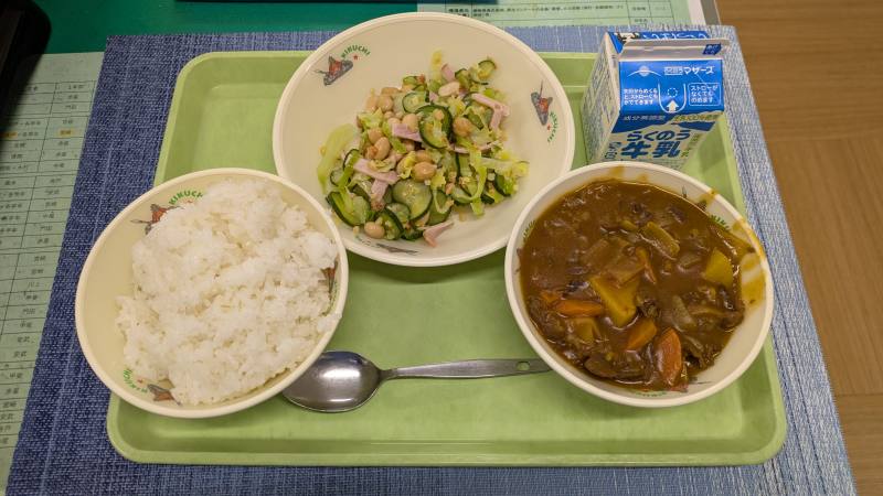 ・おせちもいいですが、生徒はこちらが好きですね🍛給食準備中にカレーの匂いが学校中に広がり、気持ちが高ぶりました(≧▽≦)今日はビーフカレー☆みんな喜んでたくさんいただきました!