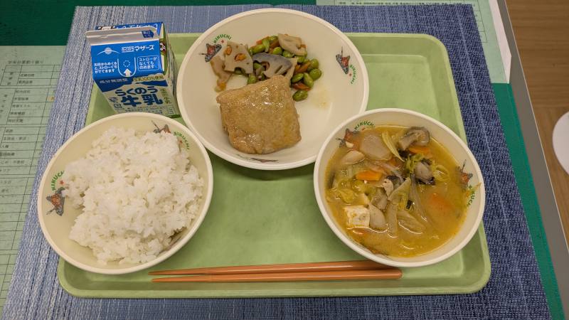 ・今日は朝からとても冷えて、朝の学校の気温はマイナス1度💦足元からとても寒い日でした(>_<)こんな日に給食に『ちゃんこ』とは、とってもありがたいで(≧▽≦)さほど辛くないほんのりとしたキムチの味が食欲を増進させてくれました!