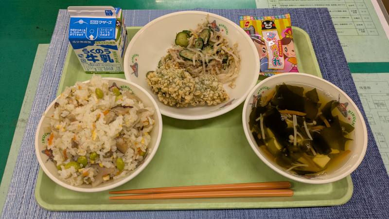 ちらし寿司 牛乳 魚の天玉揚げ