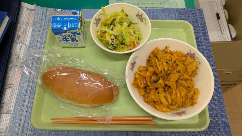 ・本日は洋食メニュー!ペンネのミートソースは食べやすく、ひき肉もたくさん入っていました!甘夏サラダはサッパリしていて、口の中をリフレッシュさせてくれます(*^▽^*)