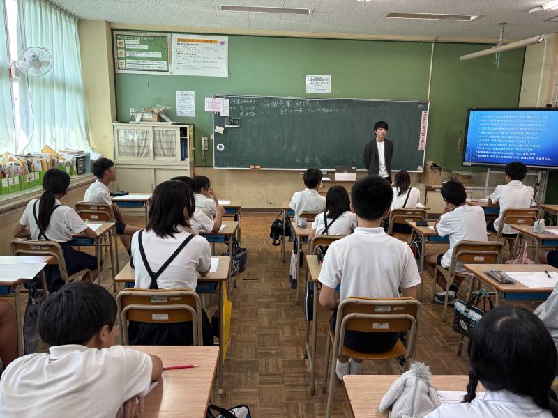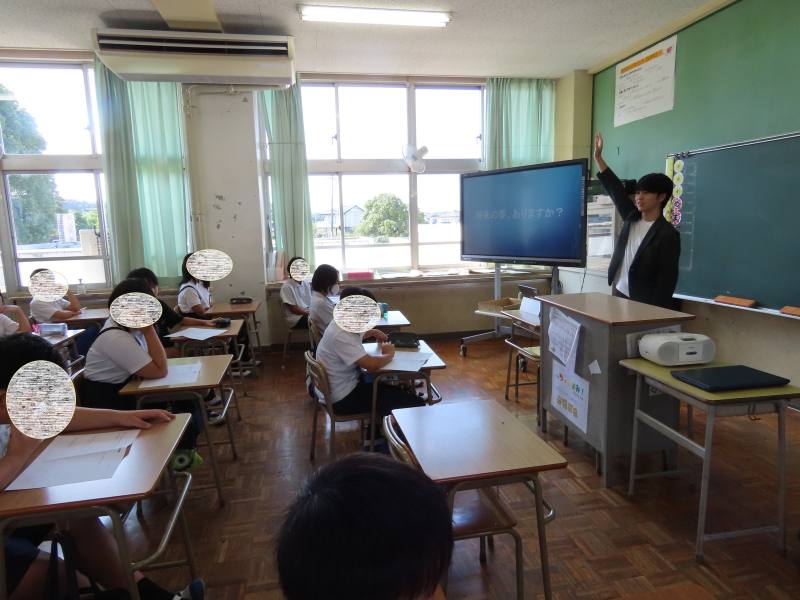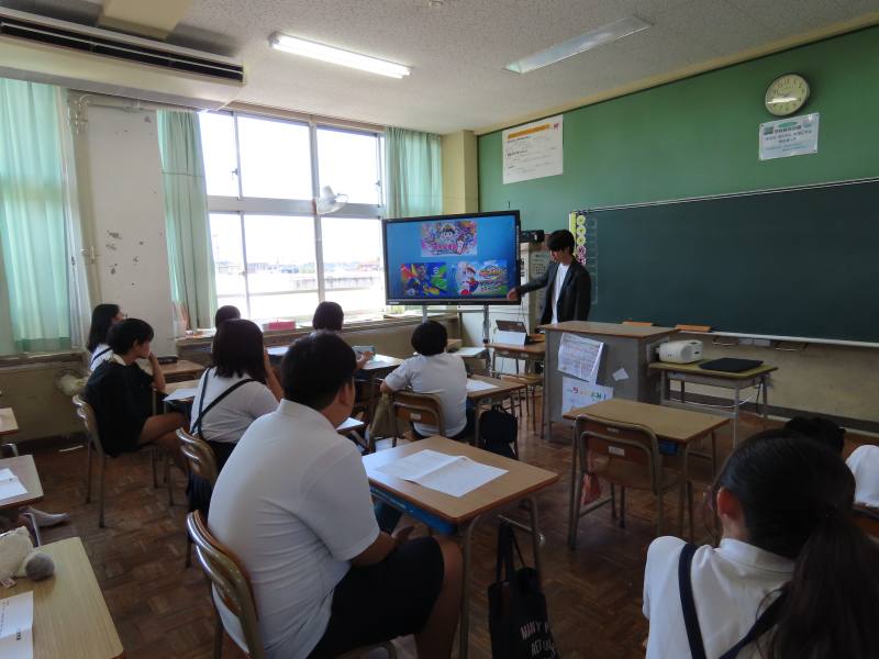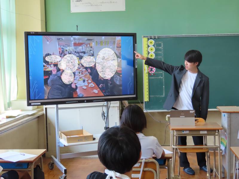 ゲームが大好きで、次第にゲームをつくる仕事につきたいという夢をもち、勉強を頑張り、4月からゲームをつくる会社に就職されるそうです。夢をかなえた先輩の話に、子どもたちは真剣に耳を傾けていました。