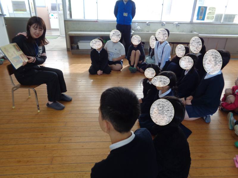 1-1教室では、石坂先生による「めぐる森の物語」を
