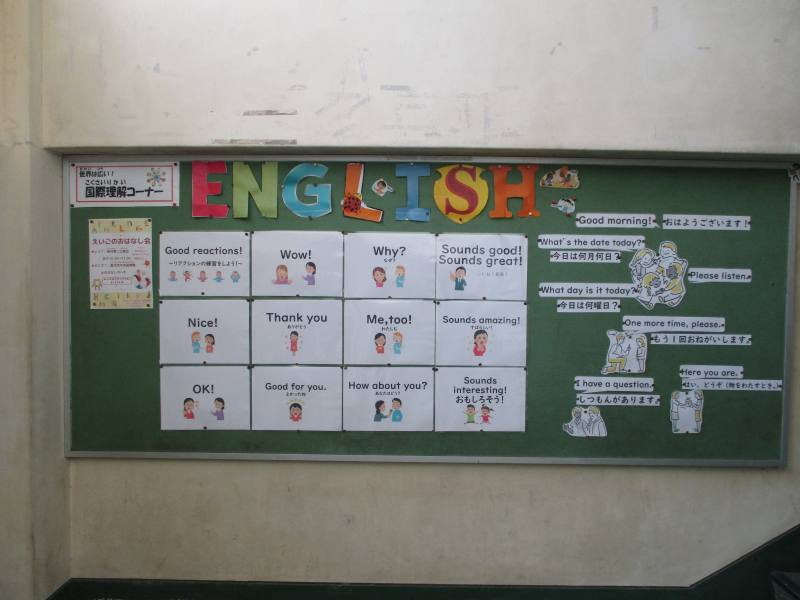 外国語コーナーでは、日常的に使ってほし言葉を掲示しました。