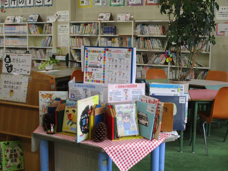 図書館では、おすすめの本を目立つ場所に設置したり、子どもたちが静かに本を読む環境づくりを工夫したりしています。