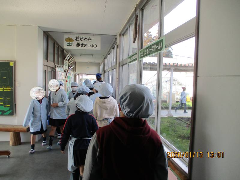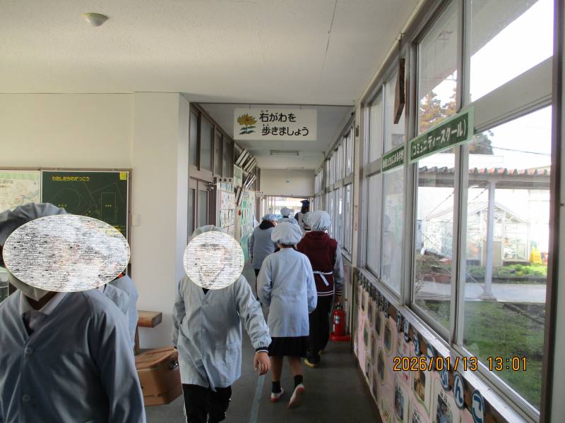12月から給食準備や片付けの時間に、ろうかを歩こう運動を行っています。