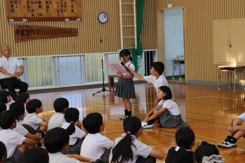 どの学年も前期の頑張りがよく分かる発表でした。みんなが見守る中,堂々と発表した6人の子どもたち,とてもかっこよかったです。