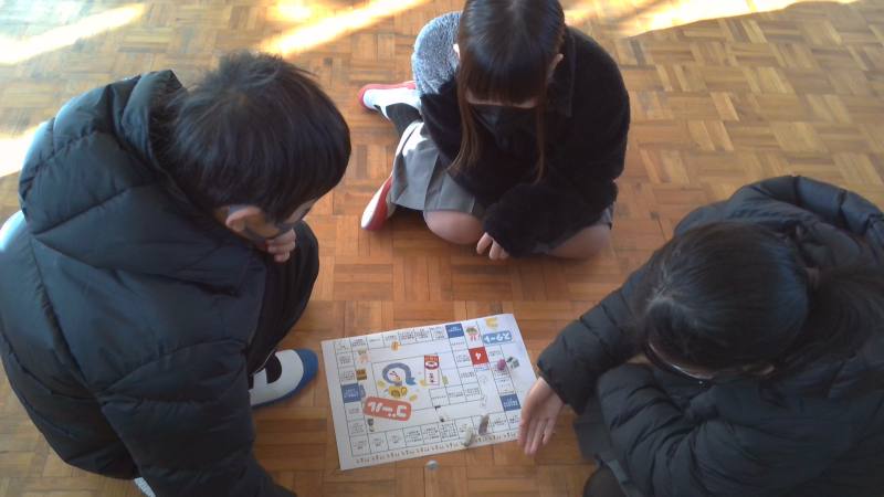 久しぶりに友達と会い,冬休みの思い出を笑顔で話していました。