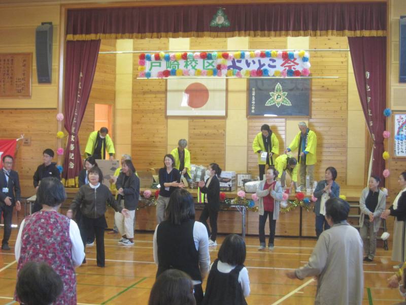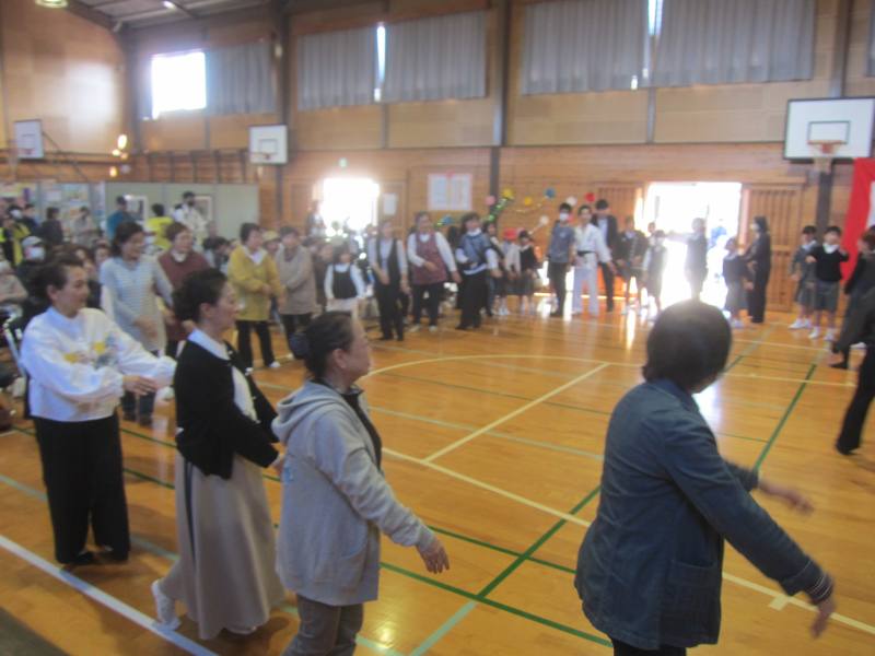 午後2時過ぎのプログラム16番、最後を締めくくるのは全体総踊り「戸崎小唄」でした。みなさんで、円をつくって楽しみました。