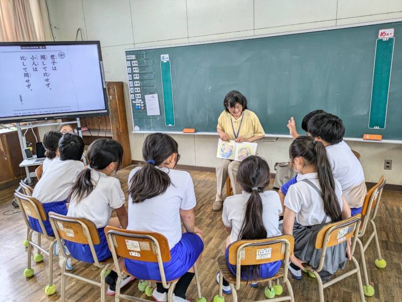 低学年の子供たちは楽しそうに、高学年の子供たちは真剣な表情で絵本や本の読み聞かせを聞いていました。