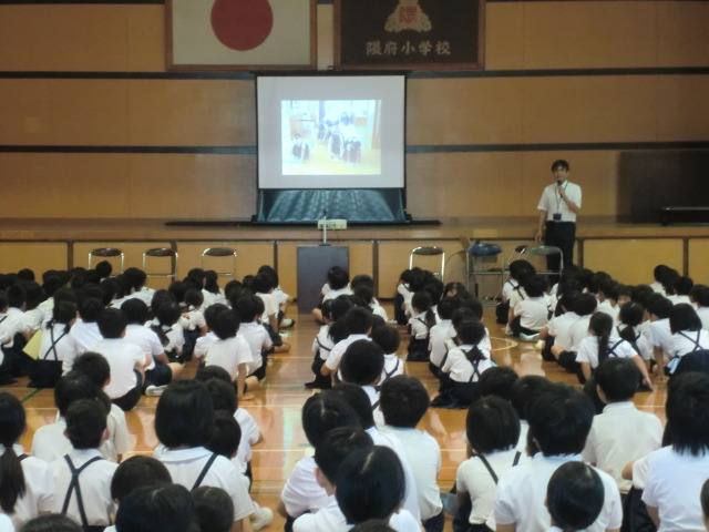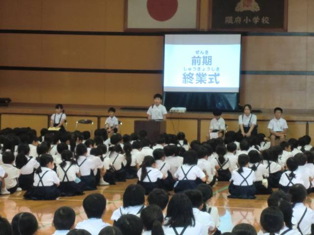 10月10日、前期終業式を行いました。前期は始業式、入学式、運動会、プール、集団宿泊教室、見学旅行等々、たくさんの行事の中で子どもたちが元気いっぱいに活動しました。また、日ごろの授業の中でも、学校教育目標の「自ら考え なかまと高め合う隈府小」に向けて、自分で考え、それを友だちに伝え学び合う姿がたくさん見られました。今日の前期終了式では、1年生から6年生までの代表児童がそれぞれの学びを振り返り発表しました。秋休みは地域の行事もたくさんあり、隈府小から参加する人もたくさんいます。秋休みも実りの多い毎日を過ごしてほしいです。前期大変お世話になりました。