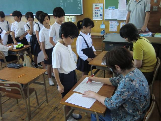 今年も学習支援ボランティア(赤ペン先生)の方々との算数の学習が始まりました。今年度は10月、11月で計4回を1~3年生で行います。赤ペン先生との学習を楽しみにしている児童も多く、「今年はまだ始まりませんか?」と尋ねてくる人もいました。今日の終了後には「よくがんばっていました!」と赤ペン先生からお褒めの言葉もいただきました。地域の方とも学び、学力をつけてほしいと思います。
