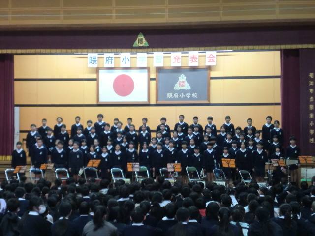 12月19日(金)令和7年度の学習発表会を行いました。今年度は創立150周年記念式典を兼ねて行った昨年度から通常の形式に戻しましたが、新たに4年生以上のクラブ活動の発表の場を設定しました。体育館後方では手芸クラブ、折り紙ペーパークラフトクラブ、手作りスタンプクラブの作品を展示。開会式前の「オープニング」では菊池女子高校と合同で活動しているバトントワリングクラブが演舞を披露しました。1年生から6年生までの発表も、子どもたちがイキイキと学習したことを発表し、会場から大きな拍手をもらいました。練習した成果を発揮し、子どもたちが大活躍の学習発表会でした。