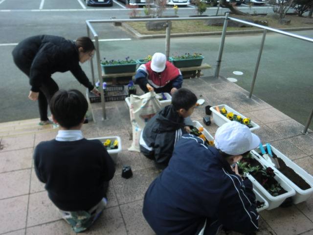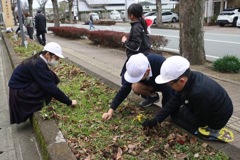 今日は今年初めての委員会活動の日でした。各委員会で、今月の活動をしたり、次年度に向けた話し合いをしたりして計画的に活動をしました。栽培委員会は寒い中、花の植え替えをテキパキと行っていました。また、ボランティア委員会は菊池市役所前の歩道の草取りをし、地域をきれいにしました。他の委員会の様子を見ても、とても頼もしい高学年の委員会活動です。令和8年もよろしくお願いします。