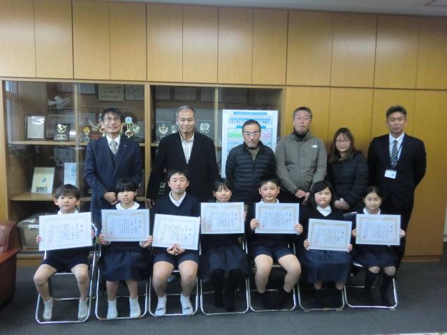 隈府小校区人権啓発推進会議の取組で、子どもたちや保護者、地域の方から人権標語を募集しました。たくさんの作品が集まり、審査をした結果、2年生児童の作品[おにいちゃん スマホじゃなくて ぼくをみて]が最優秀賞に選ばれました。その他、優秀賞や入選の作品7点を今回表彰しました。作品の中にはSNSをテーマにしたものや習っているスポーツをテーマにしたもの等、色々な視点で考えさせられました。後日、本校に掲示をいたしますので、来校の際にはご覧ください。