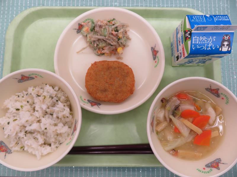 菜飯、里芋の味噌汁、馬かコロッケ、ごぼうサラダ