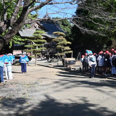 泗水東小の住吉日吉神社雨乞太鼓の体験学習(総合的な...